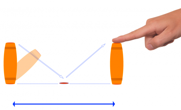 Ziel: Der Fokus-Stick macht genau zwei Flips hintereinander, ohne berührt zu werden. Direkt nach dem zweiten Flip wird er angehalten, sodass er direkt wieder mit einem Double-Flip zurück geschubst und wieder angehalten wird. Je nachdem wie es für Dich besser ist, kannst Du den Stick mit der flachen Hand oder mit einem Finger halten.